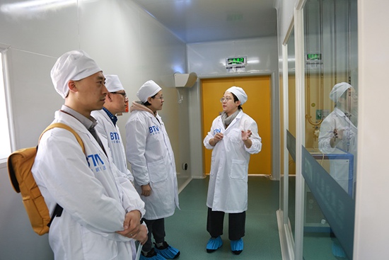 記者在云南貝泰妮生物科技集團(tuán)有限公司參觀生產(chǎn)線。 李發(fā)興攝