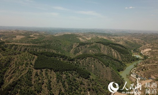 從高空俯瞰,高西溝披上了一層“綠衣”。 人民網(wǎng)記者吳超攝