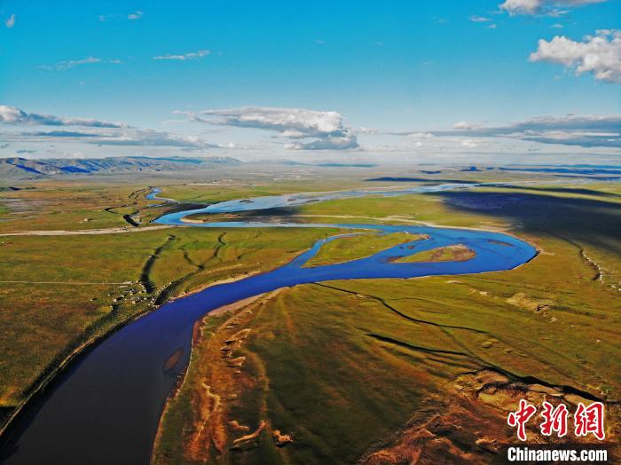 圖為甘南藏族自治州瑪曲黃河。(無人機(jī)照片)九美旦增攝