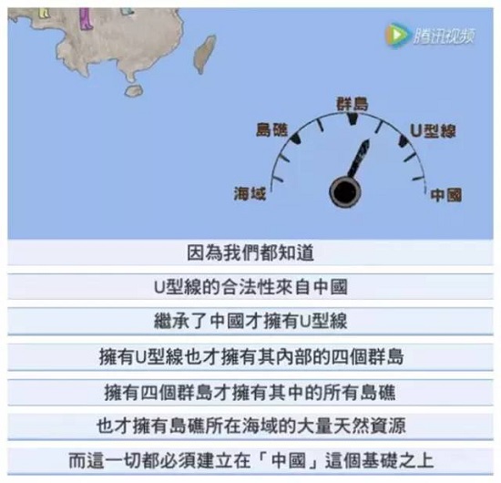 在這段7分多鐘的短視頻中,臺灣青年用輕松易懂的言語引述歷史事實(shí)證明南海諸島自古便屬于中國。同時,他強(qiáng)調(diào),“我們都知道,U型線的合法性來自中國,繼承了中國才擁有U型線,擁有U型線也才擁有其內(nèi)部的四個群島……而這一切,都必須建立在‘中國’這個基礎(chǔ)之上?!边@位臺灣青年在視頻結(jié)尾處呼吁大家,“南海仲裁案即將出爐的關(guān)口上,我們應(yīng)該選擇與大陸的同胞共同捍衛(wèi)祖宗留下來的9段線。而不是去投靠根本不在南海邊上的美國、日本,斷送祖先基業(yè)、背棄手足同胞?!痹撘曨l不僅得到臺灣網(wǎng)友的積極響應(yīng),在大陸青年中也反響巨大。網(wǎng)友“大絡(luò)腮胡”的留言,“兩岸同胞當(dāng)攜手捍衛(wèi)我中華民族之領(lǐng)土、炎黃子孫之尊嚴(yán)!”傳達(dá)出了很多青年的心聲。