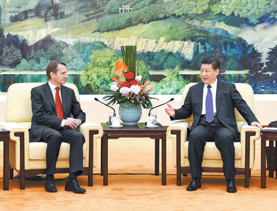 習(xí)近平首先請(qǐng)納雷什金轉(zhuǎn)達(dá)對(duì)普京總統(tǒng)的誠摯問候。他說,中俄全面戰(zhàn)略協(xié)作伙伴關(guān)系的高水平發(fā)展符合兩國人民共同愿望,順應(yīng)兩國發(fā)展振興需要,合乎世界和平、發(fā)展、合作、共贏的歷史潮流。我同普京總統(tǒng)達(dá)成共識(shí),下一階段發(fā)展中俄關(guān)系的中心任務(wù),是把兩國高水平的政治關(guān)系優(yōu)勢(shì)轉(zhuǎn)化為更多務(wù)實(shí)合作和國際合作成果,更好地造福兩國和兩國人民。今年是《中俄睦鄰友好合作條約》簽署15周年。希望雙方以此為契機(jī),大力弘揚(yáng)條約確立的世代友好理念,為兩國關(guān)系長期健康穩(wěn)定發(fā)展奠定更加堅(jiān)實(shí)的社會(huì)和民意基礎(chǔ)。