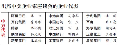 據(jù)現(xiàn)場參會人員透露,座談會分兩場。第一場是企業(yè)家坐在一起自由發(fā)言。習近平主席參加第二場。中方和外方的主持人分別是中國貿促會會長姜增偉和美國前財長、保爾森基金會主席亨利·保爾森。參加座談的30位企業(yè)家并不是圍坐一個圓桌,而是圍成一個長方形就座。中美企業(yè)家在人數(shù)上各占一半。