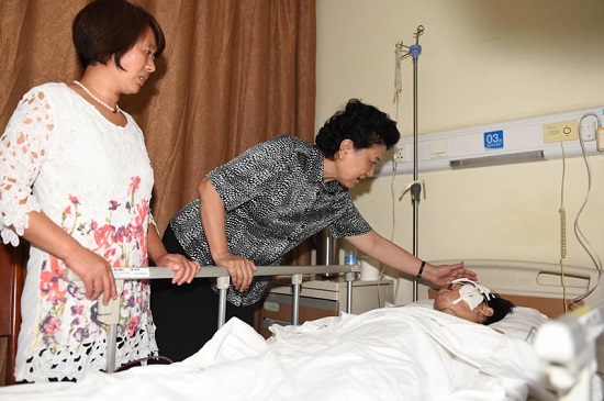 劉延?xùn)|看望天津瑞海公司危險(xiǎn)品倉(cāng)庫(kù)爆炸事故 受傷人員及家屬