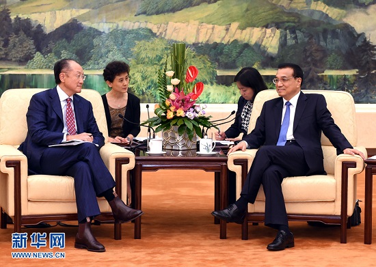 李克強(qiáng)表示,中方愿繼續(xù)豐富和發(fā)展同世界銀行的伙伴關(guān)系,共同抵御世界經(jīng)濟(jì)下行壓力,促進(jìn)全球經(jīng)濟(jì)強(qiáng)勁、可持續(xù)、平衡增長(zhǎng)。