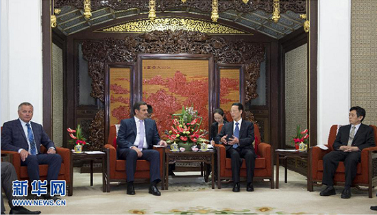 7月8日,中共中央政治局常委、國務(wù)院副總理張高麗在北京中南海紫光閣會見白俄羅斯副總理加里寧。新華社 記者 王曄 攝