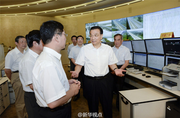 李克強(qiáng)一直牽系中國(guó)鐵路總公司成立后的轉(zhuǎn)企改制情況。22日他專(zhuān)程考察鐵路總公司,站在世界最大的國(guó)家級(jí)鐵路運(yùn)輸調(diào)度指揮中心密密麻麻的電子運(yùn)行屏幕前,他說(shuō),鐵路建設(shè)要堅(jiān)持質(zhì)量第一,運(yùn)營(yíng)中乘客至上。要在保證安全的前提下,提高效率和服務(wù)水平。