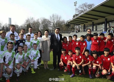29日,在德國訪問的中國國家主席習近平,觀看了一場中德小球員之間的友誼賽,而代表中國出賽的球員來自陜西志丹縣。