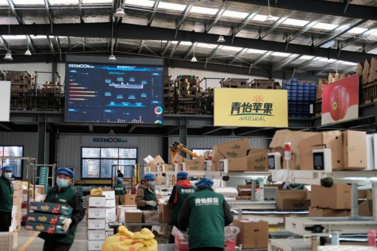 除了選果線升級,延安市洛川縣的物流業(yè)也緊隨蘋果電商的發(fā)展不斷進步。在洛川蘋果現(xiàn)代智慧物流中心,已經(jīng)裝箱的蘋果從這里集中發(fā)出,銷往全國、走向世界。