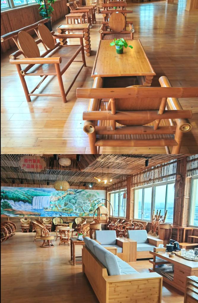 貴州新錦竹木制品有限公司展廳里的竹家具。新華社記者 李驚亞 攝