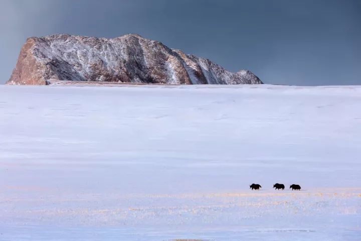大概是3月中旬的一天,羌塘陽光燦爛,林根火和老馬驅(qū)車到一座冰山下,遠(yuǎn)處正好有一頭雄性野牦牛在啃草皮,林根火歡喜得緊,下車就舉起長炮一樣的鏡頭“咔嚓咔嚓”連拍了多張照片。