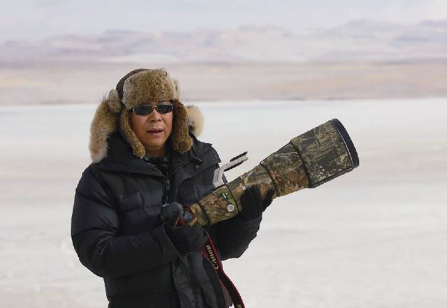 林根火今年47歲,是富陽一家建筑公司的老板。說是攝影師,其實(shí)他學(xué)習(xí)攝影滿打滿算才4年光景。不過,俗話說“不瘋魔不成活”,為了拍照,他每年前往西藏?zé)o人區(qū),零下20多攝氏度,通常一待就是十幾天;聽說河南有只漂亮的鳥,他可以放下手里的活,自駕1200公里直奔主題……