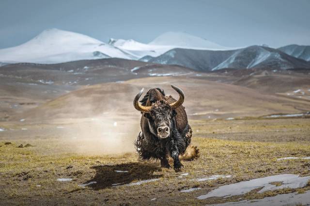在比賽結(jié)果剛剛出爐的2017美國《國家地理》全球攝影大賽中,一幅作品《怒發(fā)沖冠》受到關(guān)注——冰川下一頭野生牦牛沖刺而來,毛發(fā)亂舞、塵土飛揚(yáng),仿佛下一秒就能將鏡頭外的拍攝者撞飛到百米開外。