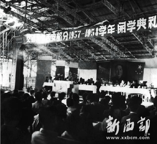 1957年,西安交大新生開學典禮就是在草棚大禮堂舉行的。據(jù)趙大良推測,這個大禮堂從建好一直使用到1964年國慶節(jié),因為當年國慶節(jié)文藝演出還在這里進行,有照片為證。