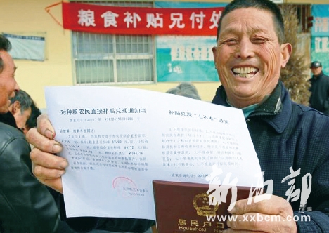 ▲免除農(nóng)業(yè)稅的同時(shí),政府又為種糧農(nóng)民發(fā)放補(bǔ)貼。
