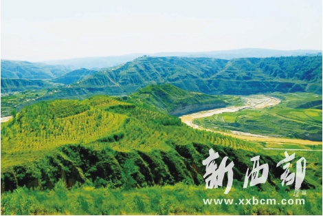 ▲延安退耕還林(草)千萬(wàn)畝,黃土高原披綠裝。