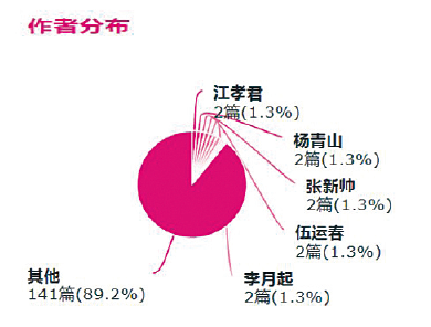 三是高產(chǎn)出作者分布。在155篇關(guān)于成渝城市群的研究文獻中,發(fā)表了2篇文章以上的有5名學(xué)者,89.2%的作者分別發(fā)表了一篇文章,如圖3。其中,江孝君、楊青山、張新帥、伍運春、李月起等學(xué)者就成渝城市群協(xié)調(diào)發(fā)展相關(guān)內(nèi)容各發(fā)文2篇,共10篇,主要從區(qū)域協(xié)調(diào)發(fā)展、新型城鎮(zhèn)化、協(xié)調(diào)發(fā)展策略等視角對成渝經(jīng)濟區(qū)協(xié)調(diào)發(fā)展戰(zhàn)略進行研究。從數(shù)據(jù)統(tǒng)計結(jié)果分析來看,很少有作者會持續(xù)追蹤一個話題,進行更為深入的研究。