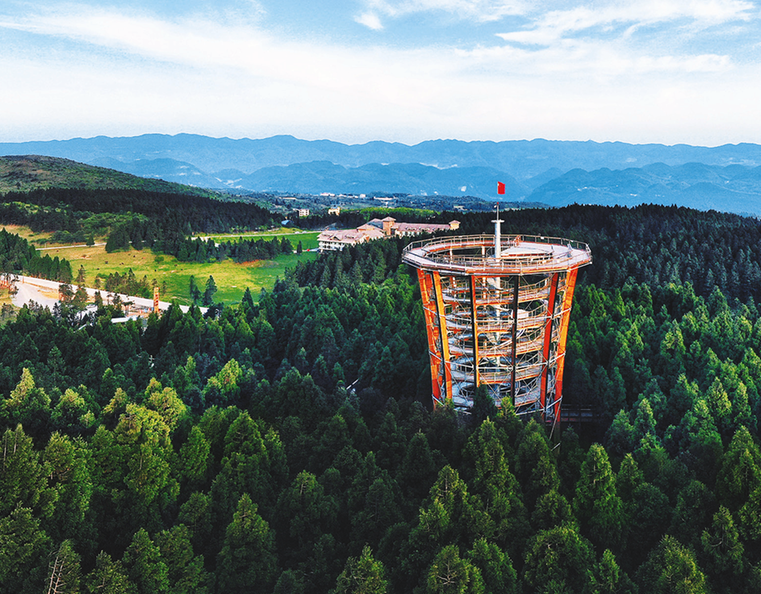 2019年,“樹頂漫步”營地項目招商落戶仙女山林場,營地占地面積350畝,總投資2億元。營地規(guī)劃建設(shè)嚴(yán)格遵循“無痕山林”理念,將占地比重降到最小。項目被聯(lián)合國評為對人和環(huán)境“雙友好”:充分尊重自然,不改變原始地形地貌,降低產(chǎn)品和施工對自然的擾動,所有的互動體驗項目做到零排放;覆蓋全群體,輪椅、嬰兒車都可以全程通達(dá)營地每一處。營地中高41米的“森林之眼”觀景塔成為仙女山的地標(biāo)式建筑,是眾多戶外愛好者和親子家庭的假期打卡地。