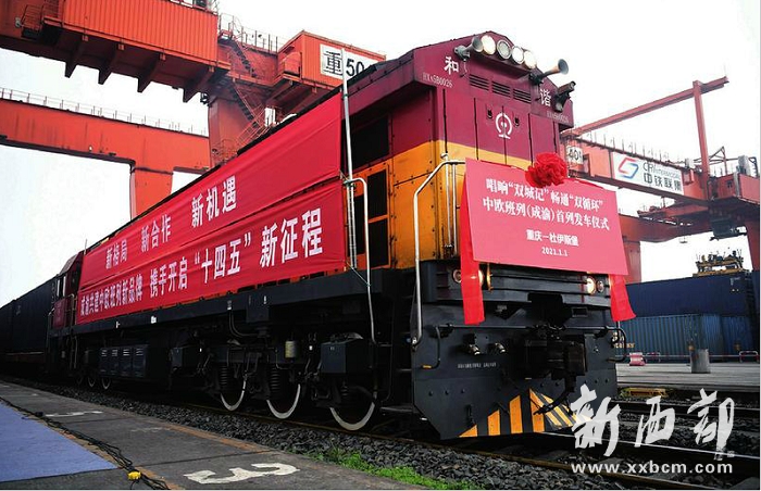 2021年1月1日上午10時,首列中歐班列(成渝)號列車從成都和重慶發(fā)車,駛向歐洲的波蘭羅茲和德國杜伊斯堡。從這一天開始,成渝兩地開行的中歐班列全部冠以“成渝”名號,再不分彼此。截至本文發(fā)稿時,2021年中歐班列(成渝)號開行數(shù)量超3500列,占全國開行總量30%以上,成為中歐班列的“領(lǐng)頭羊”。