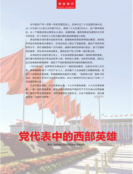 六大代表王懋廷、七大代表趙占魁、十七大代表張桂梅、十九大代表余德春……每一位代表的故事,都能讓我們感受到不同時代千千萬萬戰(zhàn)斗在西部基層一線共產(chǎn)黨員踔厲奮發(fā)、為民造福的堅守和擔(dān)當(dāng)。從這個角度來說,他們是黨代表,也是時代英雄!
