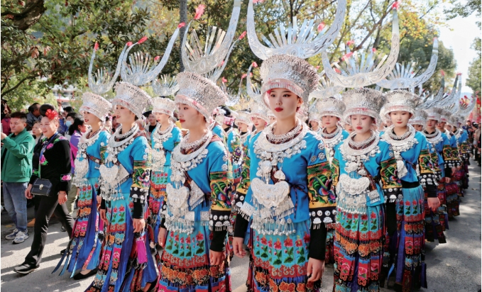 因為節(jié)慶文化無限的魅力,迄今為止,雷山縣已連續(xù)舉辦十多屆苗年或鼓藏節(jié)活動,這里面,有姑媽回娘家、非遺大巡游、千人長桌宴等活動,加上各個村寨家庭的客人,每次節(jié)日都吸引幾萬甚至十幾萬的人,從全國各地紛至沓來。就本質來說,鼓藏節(jié)是一個放大了的家庭祭祖活動,但在新時代的語境下,由于苗寨與外界頻繁的互動,鼓藏節(jié)已經(jīng)跨越出苗寨自有的邊界,整合著社會,有著中華民族各同胞以節(jié)為媒交往交流交融的現(xiàn)實,體現(xiàn)出民族團結、中華一家的精神氣質。