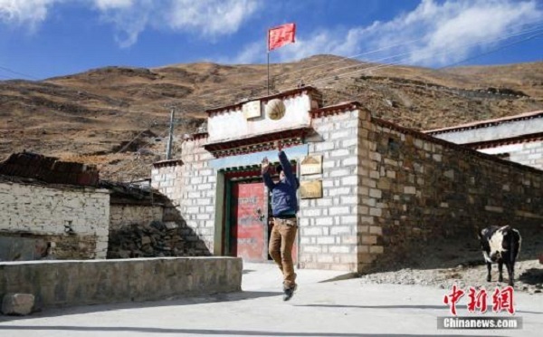 資料圖:在海拔4500米處的西藏浪卡子縣白地鄉(xiāng),一名孩子在快樂(lè)投籃。中新社發(fā) 張浩 攝