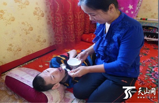 “婆婆對買買提江的照顧特別仔細,在自己身患糖尿病、高血壓、尿毒癥等多種疾病的情況下,仍然精心撫養(yǎng)著買買提江。買買提江患有腦癱,大小便失禁,走動也不方便,婆婆就把盆子放在房子里,等買買提江方便完再拿出去;吃飯時,婆婆也總是先嘗好飯菜的溫度,再喂給買買提江吃;婆婆還每晚跟買買提江住在一起,買買提江喘個粗氣,她都能馬上驚醒。婆婆還積極動員全家人節(jié)衣縮食,為買買提江治病,但還是欠下近萬元的藥費?!辟I然木汗慢慢地說著,眼睛里透著堅定與溫柔。