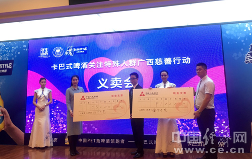 慈善活動(dòng)當(dāng)天,卡巴式啤酒廣西銷售分公司捐贈7700瓶卡巴式啤酒作為慈善物品現(xiàn)場義賣,義賣所得善款近50000多元全部捐贈給柳州市慈善會從事對廣西特殊人群兒童的健康生活資助。同時(shí),從2016年5月1日-12月31日,在廣西區(qū)內(nèi)每銷售一瓶卡巴式啤酒,卡巴式啤酒廣西銷售分公司將捐出5分錢,所有款項(xiàng)全部通過柳州市慈善會捐助到需要資助的聾啞人群和留守兒童。