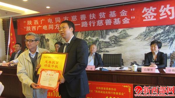5月10日上午,省慈善協(xié)會舉行與陜西省廣電同方數(shù)字電視有限責(zé)任公司簽署建立“陜西廣電同方慈善扶貧基金”“陜西廣電同方扶貧一路行慈善基金”簽約暨廣電慈善志愿服務(wù)隊(duì)成立儀式。