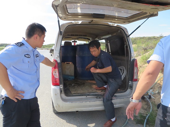 在白界轄區(qū)經(jīng)常出現(xiàn)一輛五菱小面包車(chē),看起來(lái)和普通的車(chē)沒(méi)有任何區(qū)別,但卻經(jīng)常停在各個(gè)小型飯店門(mén)口。這一情況被細(xì)心的白界派出所所長(zhǎng)常在斌看在眼里,為深入了解情況,民警便衣尾隨后,發(fā)現(xiàn)此車(chē)長(zhǎng)期為各個(gè)中小飯店提供摻水的工業(yè)甲醇作為燃料,而他的車(chē)上沒(méi)有任何安全防范措施,只是用三個(gè)簡(jiǎn)單的塑料罐桶、一臺(tái)發(fā)電機(jī)和一根塑料管進(jìn)行運(yùn)輸、買(mǎi)賣(mài)和儲(chǔ)存工業(yè)甲醇。近日來(lái),日最高氣溫可達(dá)近30攝氏度,其車(chē)長(zhǎng)期暴曬在日光下行駛,其危險(xiǎn)程度可想而知。了解情況后,民警做好應(yīng)急預(yù)案,于6月30日上午10時(shí)許將正在楊官海則村售賣(mài)甲醇的王某當(dāng)場(chǎng)帶回。