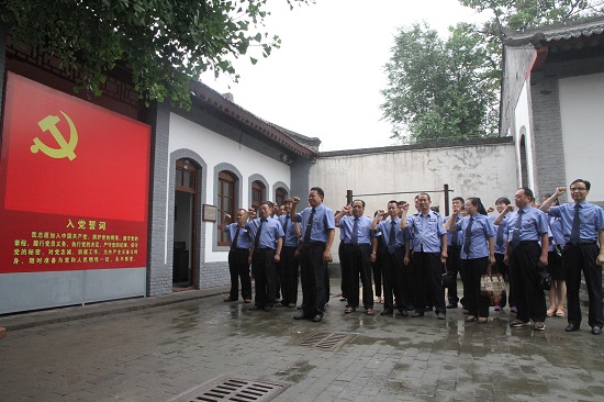 參觀完畢后,在辦事處內(nèi),機(jī)關(guān)黨委組織參加活動(dòng)的全體黨員面對(duì)黨旗進(jìn)行了莊嚴(yán)宣誓。