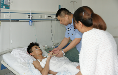 ?新西部網(wǎng)訊(記者宋海龍通訊員段少偉)“你是新時(shí)期全市廣大保安隊(duì)伍的學(xué)習(xí)榜樣和楷模,希望你安心治療,安心養(yǎng)傷,爭(zhēng)取早日康復(fù),重返工作崗位,在協(xié)助公安機(jī)關(guān)維護(hù)社會(huì)治安方面做出新的更大貢獻(xiàn)。”西安市公安局治安局保安處處長張學(xué)林對(duì)躺在病床上的西北大學(xué)現(xiàn)代學(xué)院保安高敏深情地說道,這是6月4日,發(fā)生在省武警醫(yī)院住院部病床前的一幕。