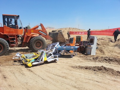 2014年5月4日上午,民警采取碾壓填埋的方式將收繳回來的賭博游戲機(jī)及電子主板進(jìn)行集中銷毀,旨在震懾同類違法行為,告誡各娛樂場所經(jīng)營業(yè)主要做到依法依規(guī)經(jīng)營,不招賭、不參賭,不設(shè)放具有賭博功能的電子游戲機(jī),同時,也希望通過查處、銷毀行為號召轄區(qū)廣大居民能夠積極參與到社會治安整治工作中來,遠(yuǎn)離賭博活動,積極向公安機(jī)關(guān)提供線索,檢舉揭發(fā)違法犯罪行為。
