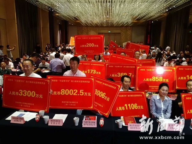 會議現(xiàn)場,西安宏府企業(yè)集團、漢中文化旅游投資集團、榮華控股企業(yè)集團、陜西森弗天然制品有限公司、銅川市鴻偉實業(yè)股份有限公司、澄城縣昌盛果品有限公司、陜西龍林建筑有限公司、陜西華琨實業(yè)有限公司、紫陽縣開源富硒科技發(fā)展有限公司、鎮(zhèn)坪縣飛渡河黃安壩旅游開發(fā)有限公司等10家民營企業(yè)代表與受助扶貧村代表、陜西省慈善協(xié)會副會長張文亮簽訂幫扶協(xié)議。這10 家企業(yè)此次共簽訂注入幫扶村資金2.9億元,以此表達對全省脫貧攻堅工作的大力支持。