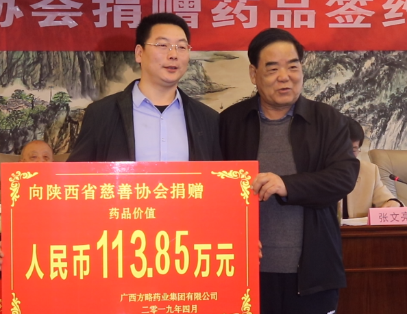 陜西省慈善協(xié)會4月2日上午在西安舉行“天朗慈善文化教育宣傳基金”簽約暨4家制藥公司藥品捐贈儀式。省慈善協(xié)會老領(lǐng)導(dǎo)徐山林,會長劉維隆,天朗控股集團(tuán)副總裁周崗,天朗控股集團(tuán)品牌總監(jiān)張楠,西安奧得康新特醫(yī)藥有限公司總經(jīng)理王建勇,武漢海特生物制藥股份有限公司營銷總監(jiān)張杰,廣州綠十字制藥有限公司銷售總監(jiān)郭培森,廣西方略藥業(yè)集團(tuán)有限公司營銷總監(jiān)杜卓雨,省慈善協(xié)會常務(wù)副會長李榮杰,副會長張文亮、張鳳英、孫忠信、趙浩義、李和等出席此次會議。