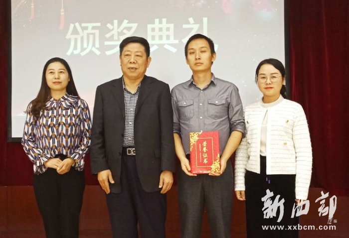 趙浩義副會(huì)長(左二)向獲得特等獎(jiǎng)?wù)哌_(dá)德書院安康分院頒獎(jiǎng)