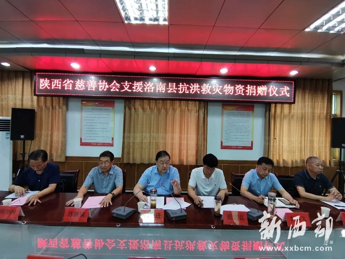 副會長張文亮主持捐贈活動。副會長蘇新泉向洛南縣縣長王宇鵬遞交了捐贈示意牌。