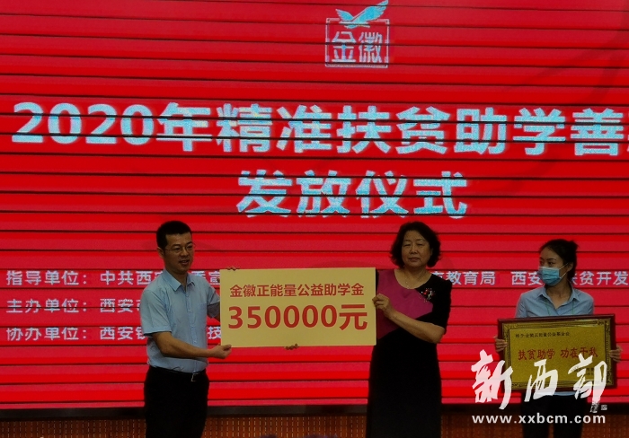 ▲金徽正能量公益基金會(huì)給西安市2020年國(guó)家統(tǒng)招的175名農(nóng)村建檔立卡戶貧困大學(xué)生以及城市家庭特別困難的大學(xué)生每人一次性給予2000元資助,幫他們圓大學(xué)夢(mèng)。