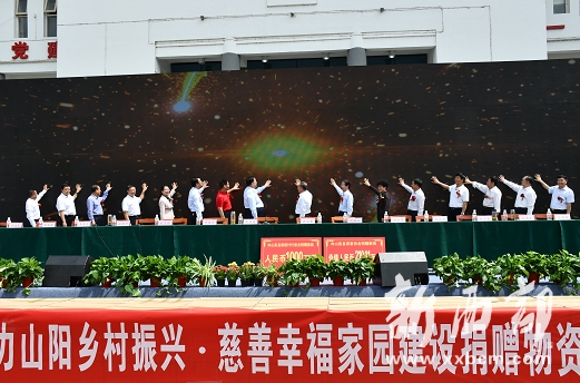 儀式上,省慈善協(xié)會副會長蘇新泉向山陽縣慈善協(xié)會會長張達喜遞交捐贈210.115萬元展示牌;省慈善協(xié)會副會長張文亮向山陽縣南坡村黨支書記孫延雙遞交鄉(xiāng)村振興、慈善幸福家園項目資金1000萬元展示牌。與會領(lǐng)導啟動山陽縣鄉(xiāng)村振興、慈善幸福家園項目。