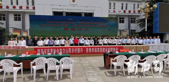 新西部網(wǎng)商洛5月27日電(記者王順利)陜西省慈善協(xié)會、陜西鴻瑞投資集團捐贈款物1210.11萬元助力山陽縣鄉(xiāng)村振興、慈善幸福家園建設(shè)儀式今天在山陽縣漫川關(guān)鎮(zhèn)舉行。陜西省人大常委會原副主任、省慈善協(xié)會會長吳前進,商洛市委副書記、常務副市長武文罡,商洛市人大常委會原主任、市決策委主任何鐵虎,陜西省總工會原常務副主席周樹紅,商洛市委常委、統(tǒng)戰(zhàn)部長杜志強,商洛市人大常委會一級巡視員劉淑慧,商洛市政府副市長權(quán)雅寧,商洛市政協(xié)副主席張永平,省慈善協(xié)會常務副會長李榮杰、副會長張文亮、蘇新泉、趙浩義,商洛市慈善協(xié)會會長李選良,山陽縣委書記張國瑜,陜西鴻瑞集團董事長王世春出席,吳前進、權(quán)雅寧、王世春講話,張國瑜致辭,李榮杰主持儀式。
