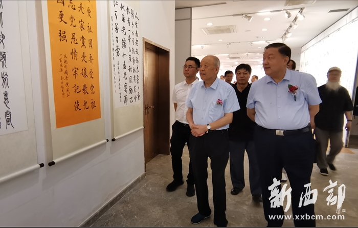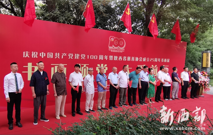 上午9時(shí)舉行書(shū)畫展開(kāi)展儀式。省政府原常務(wù)副省長(zhǎng)徐山林;省人大常委會(huì)原副主任鄧?yán)?、陳再生、劉維隆,省政協(xié)原副主席陸棟,省人大常委會(huì)原副主任、省慈善協(xié)會(huì)會(huì)長(zhǎng)吳前進(jìn),常務(wù)副會(huì)長(zhǎng)李榮杰、副會(huì)長(zhǎng)張文亮;省美術(shù)家協(xié)會(huì)主席郭線廬,黨組書(shū)記、常務(wù)副主席呂俊濤,省美協(xié)副主席宋亞萍;省書(shū)法家協(xié)會(huì)主席陳建貢;西安中國(guó)畫研究會(huì)主席李玉田;禧福祥品牌運(yùn)營(yíng)公司董事長(zhǎng)王延安;天朗集團(tuán)副總裁周崗為慶祝中國(guó)共產(chǎn)黨成立100周年慈善書(shū)畫展剪彩。徐山林宣布書(shū)畫展開(kāi)幕。