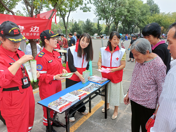 紅十字志愿者動員現(xiàn)場群眾關(guān)注“陜西紅十字救護(hù)訓(xùn)練中心”微信公眾號,發(fā)放急救手冊100余份,并對無償獻(xiàn)血、造血干細(xì)胞資料入庫、人體器官捐獻(xiàn)等知識進(jìn)行了集中普及宣傳。