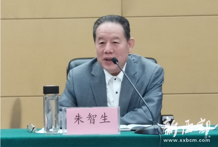 ▲西安市慈善會(huì)會(huì)長(zhǎng)朱智生(中)講話