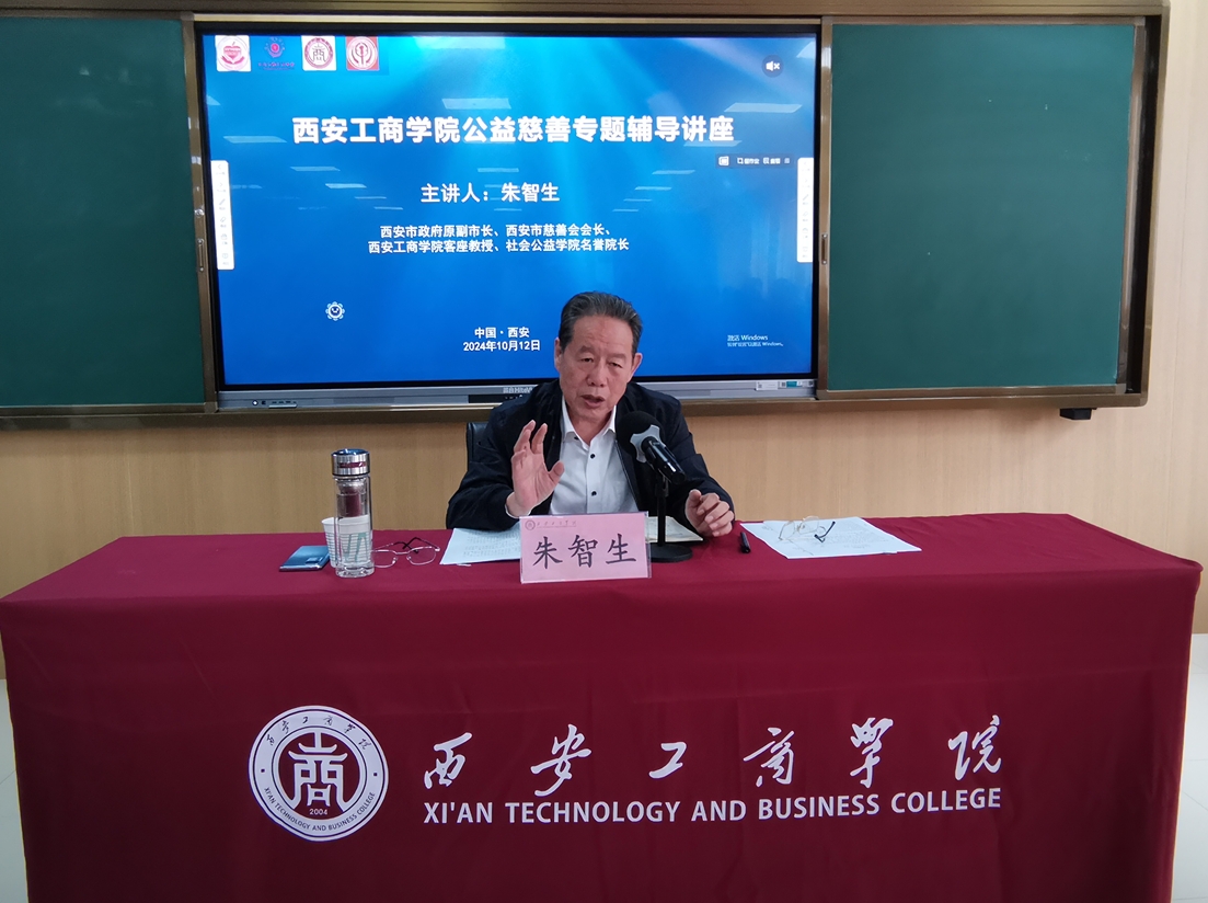 隨后,西安市慈善會(huì)會(huì)長(zhǎng)朱智生為西安工商學(xué)院師生作了慈善公益專(zhuān)題講座,分別從現(xiàn)代慈善的概念、慈善公益的意義作用、大學(xué)生怎樣參與慈善等方面進(jìn)行了講授,并以案例的方式向大家講述了參與慈善的重要性以及做慈善帶來(lái)的益處。在場(chǎng)師生們?nèi)褙炞⒌赝度氲竭@場(chǎng)慈善盛宴中,在互動(dòng)環(huán)節(jié),朱會(huì)長(zhǎng)對(duì)同學(xué)們提出的問(wèn)題一一進(jìn)行了生動(dòng)、細(xì)致的解答。同學(xué)們紛紛表示,通過(guò)這次講座使自己對(duì)現(xiàn)代慈善及做慈善公益的重要性有了深刻的認(rèn)識(shí)和了解,今后一定會(huì)積極參與慈善活動(dòng),傳遞更多的正能量。