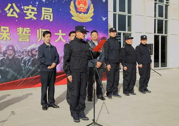 大會上,縣公安局陳衛(wèi)星局長帶領全體公安民警宣誓了《人民警察誓詞》?!拔抑驹赋蔀橹腥A人民共和國人民警察……”,鏗鏘有力、擲地有聲的誓言充分展現(xiàn)了甘泉公安民警打贏十九大安保維穩(wěn)攻堅戰(zhàn)的信心和決心。號角錚錚、警徽熠熠,隨后的匯報演練贏得了陣陣喝彩。