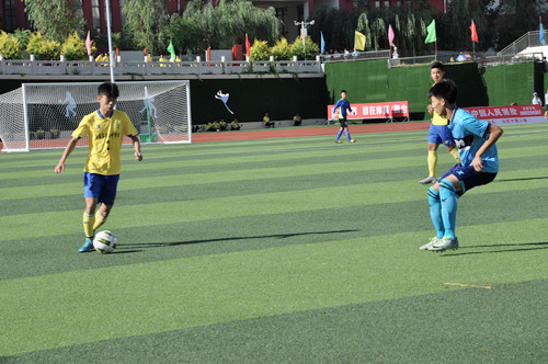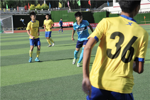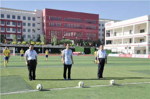 中國中學(xué)生體育協(xié)會足球工作部副主任趙俊杰、榆林市人民政府副秘書長張耀明和榆林市教育局局長沈效功為比賽開球