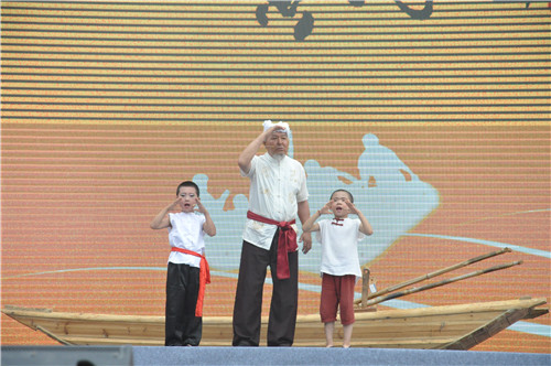 “你知道天下黃河幾十幾道彎,我知道吳堡黃河九十九道彎……”白明禮老人的一首《黃河船夫曲》將開幕式《黃河之戀》演出的帷幕拉開。隨著嗩吶、詩經(jīng)朗誦、腰鼓的表演,著名影視演員陸樹銘、著名朗誦藝術(shù)家瞿弦和、著名歌唱家趙大地以及王二妮等實(shí)力明星都前來為漂流賽助陣?,F(xiàn)場(chǎng),每一個(gè)精彩節(jié)目的演出,無不引起觀眾的熱烈歡呼。