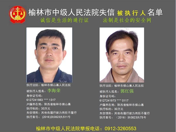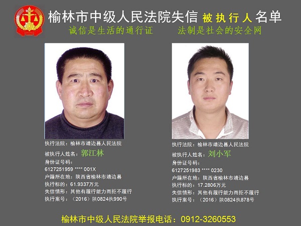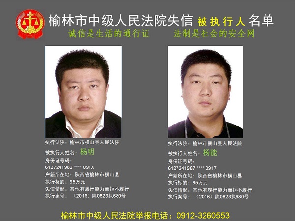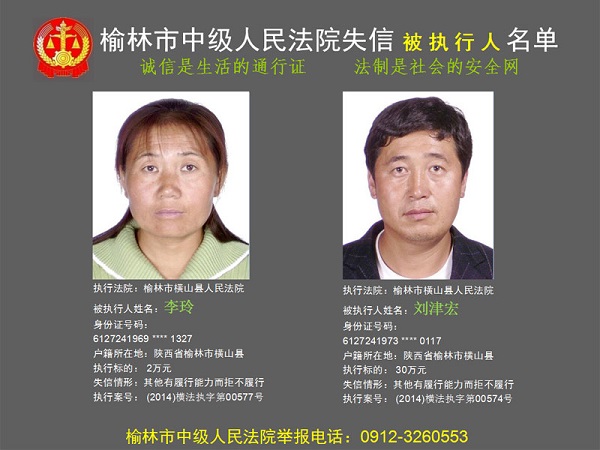 榆林市第六批失信被執(zhí)行人“黑名單”(四)80人