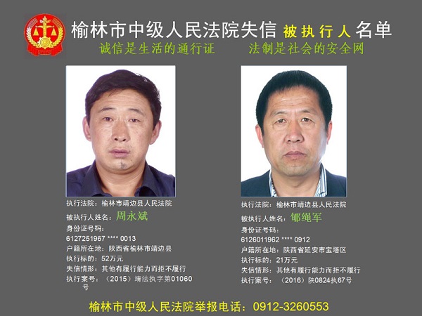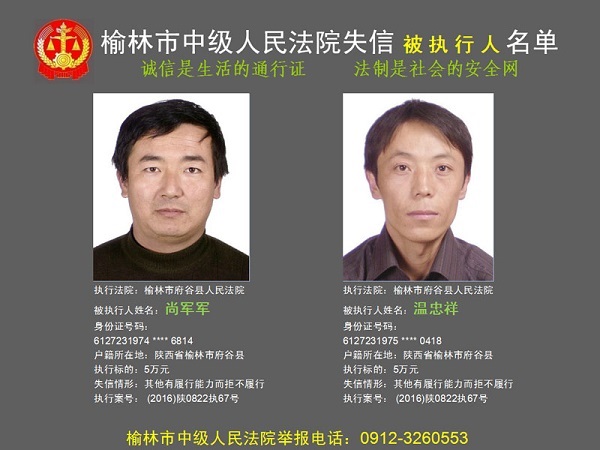 榆林市第六批失信被執(zhí)行人“黑名單”(三)80人