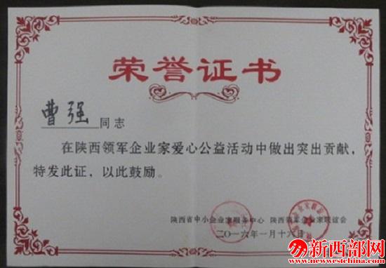 曹強屬于典型的陜北人,為人厚道做事誠信,因此在生意上有更多的人愿意和他打交道,這樣便讓他積累了一定的財富。2014年至2015年期間曹強對抗戰(zhàn)老兵、孤寡老人和留守兒童共計捐款10萬余元。而問及此事他卻笑而不談,他只說:“這是我的故鄉(xiāng),是養(yǎng)育我的根基,不管做多少都是應(yīng)該的,我只希望我能力會再大些,這樣就可以幫助更多的人”。