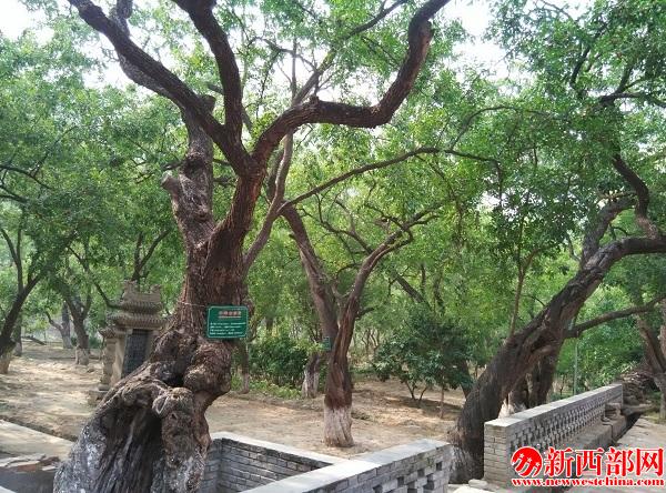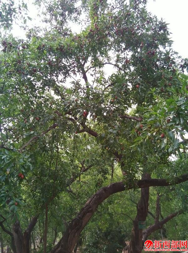該棗園共生有各齡棗樹1100余株,其中干周3米以上的有3株(最大3.41米);干周在2米以上的有30株;干周在1.5米以上的有106株;干周在1米以上的共300余株。這些古樹雖飽經(jīng)風(fēng)霜,仍枝繁葉茂,果實(shí)豐盈。林內(nèi)春季生機(jī)盎然,夏季棗花彌漫,秋季碩果累累,冬季虬枝蒼勁,既有田園風(fēng)光,又有滄桑古韻,已成為游客流連忘返的休閑所在。特別是泥河溝千年“棗樹王”經(jīng)專家科學(xué)考證,有1300多年的樹齡,其樹高8.3米,樹圍3.03米,冠幅13.4米,至今每年產(chǎn)棗百余斤,被譽(yù)為棗樹的活化石而收入《中國棗樹志》。在“棗樹王”周圍,僅次于它的上千年棗樹還有10余株,皆根深葉茂,果實(shí)累累,形成了一個奇麗多姿的古樹群。